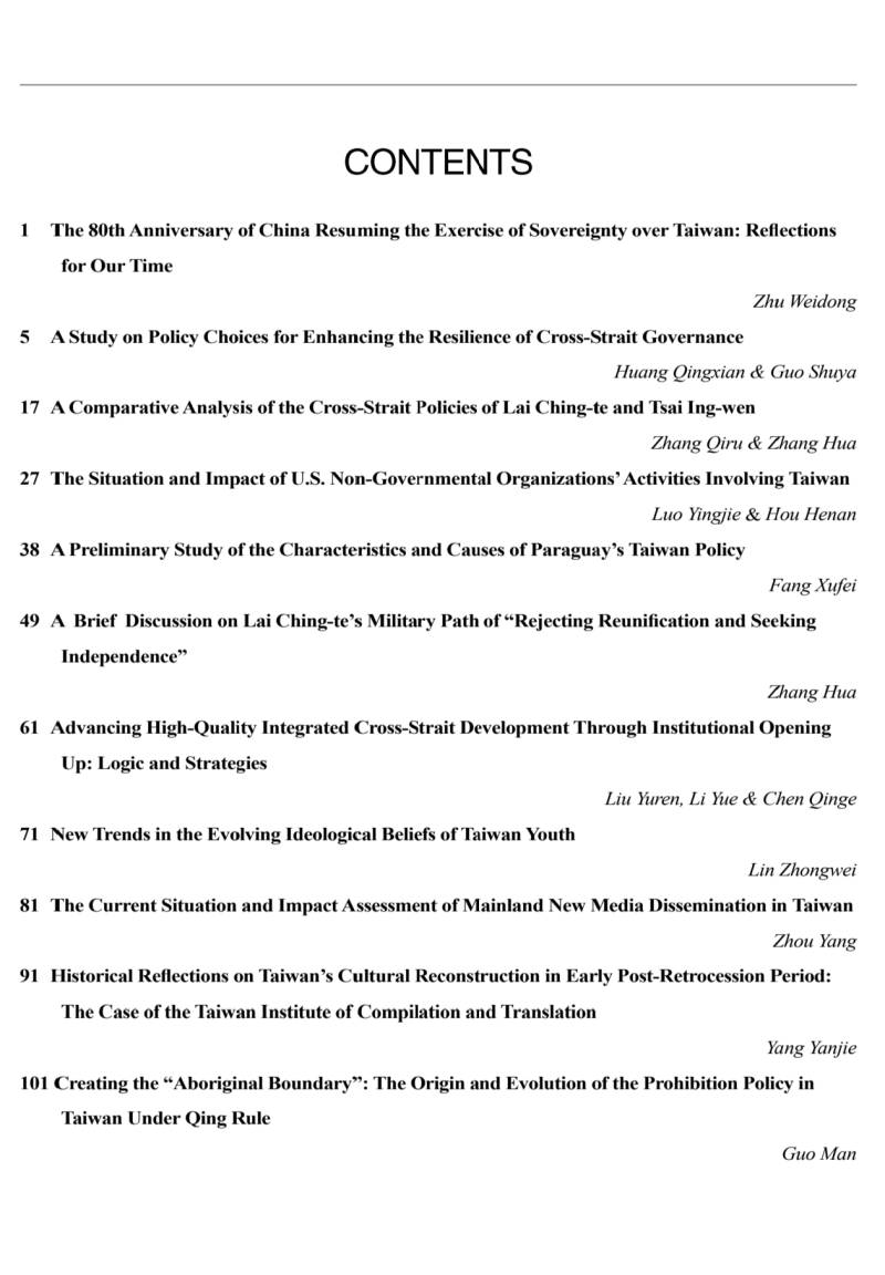 关键词:两岸关系;融合发展;治理韧性;外部干预;内部认同